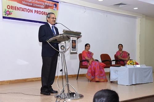 The Chief Guest of the programme, Dr Narayana Sabhahit, Registrar, Manipal Academy of Higher Education addressed the newly joined students and their parents and gave orientation about the Manipal Academy of Higher Education. Dr. Anice George, Dean, MCON Manipal gave brief introduction of the institution. Orientation on the various facilities available at the Kasturba Hospital, Manipal was briefed by Mrs. Yashodha, Nursing Superintendent. The security services available in the Manipal campus were highlighted by Dr. Prabhudev B Mane, Chief Security officer, Manipal Academy of Higher Education. Dr. Sulatha V Bhandary, Deputy Director Student affairs, Manipal Academy of Higher Education oriented the students regarding the activities of the student affairs department. The students and their parents were familiarizedto the hostel facilities by Mr. Anand K M, Incharge, Chief Warden of Manipal Academy of Higher Education hostels. Dr. Shivananda Bhat K, Chief Librarian, Health Sciences Library, Manipal Academy of Higher Education introduced the fresher’s to the library facilities. Mrs. Shashiprabha Karanth, Finance Executive, Student Finance, Manipal Academy of Higher Education addressed the students and their parents and briefed about the activities of Student Finance. Mr. Shridhar H, HoD, Director of Physical Education department informed the students about various sports events conducted under the Manipal Academy of Higher Education. Dr. Anup Naha, Chief Co-ordinator, Volunteer Service Organization, Manipal Academy of Higher Education spoke about the volunteer service activities. The Student Nurses Association (SNA) President, Mr. Michael oriented the students and their parents regarding the SNA activities of MCON Manipal. This was followed by the introduction of teacher guardians to the fresher’s and their parents, Dr. Anice George, Dean MCON Manipal clarified the doubts of students and their parents and gave concluding remarks.