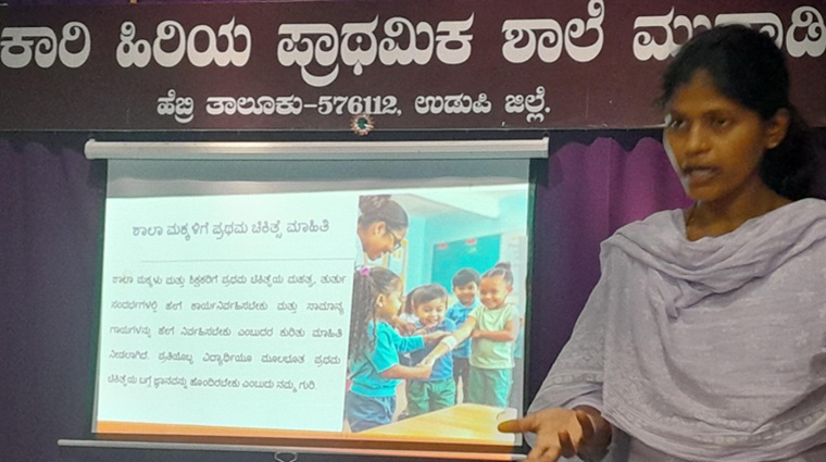The Department of Fundamentals of Nursing, Manipal College of Nursing (MCON), MAHE, as part of its Corporate Social Responsibility (CSR) initiative, conducted an outreach program on “First Aid” on August 23, 2025, from 2:00 PM to 4:00 PM at the Government Higher Primary School, Mudradi, Hebri Taluk.