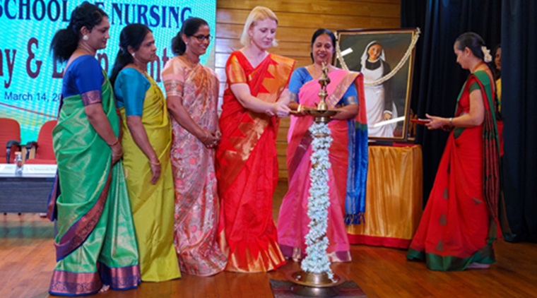 Ms. Olga Gershuni, Lecturer, Fontys University of Applied Sciences, Eindhoven, The Netherlands, was the chief guest for the program. She congratulated the students who lit the lamp and addressed the importance of lighting the lamp. She also stressed the qualities of a professional nurse and highlighted that education is not just the acquisition of knowledge; it also helps to shape the character of a person, and the power of holistic care will help a nurse become empathetic and kind.