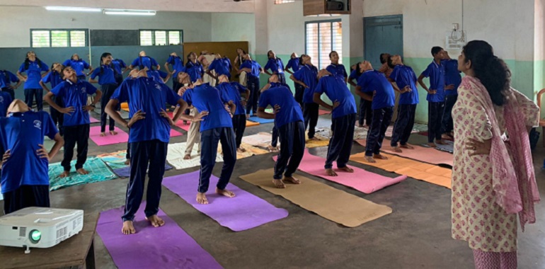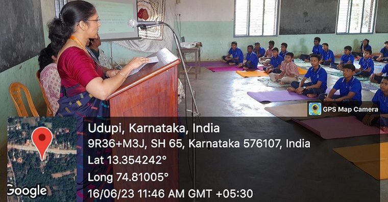 Across the world, International Yoga Day (IYD) is celebrated on June 21st every year. It coincides with the longest day of the year in the Northern Hemisphere and has special meaning in many parts of the world. The theme of IYD 2023 is “Yoga for Vasudhaiva Kutumbakam,” which beautifully captures our shared aspiration for “One Earth, One Family, and One Future.” The Department of Medical-Surgical Nursing, Manipal College of Nursing, MAHE, Manipal, observed IYD 2023 on June 16, 2023, at B M English Medium School Parkala from 11.00 am - 12.30 pm. The target audience was upper primary school students and the program emphasized the theme of meeting SDG three and sixteen i.e. good health and well-being and peace, justice, and strong institutions respectively.