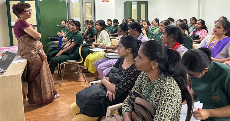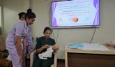 Dr. Sheila Samanta Mathai, Professor & Head, Department of Neonatology, KMC, Manipal, provided a brief overview of the program and highlighted the importance of the theme. An interactive question and answer session was organized for the semester V BSc Nursing students, MSc Nursing students of MCON, MAHE, Manipal, and staff nurses from the neonatal, antenatal, and postnatal units of Kasturba Hospital, Manipal, to strengthen their knowledge of essential newborn care practices. Dr. Subhodh Shetty, Associate Professor, Department of Neonatology, KMC, Manipal, was the resource person. A total of 20 students and 26 staff nurses demonstrated enthusiasm and actively participated in the discussion. Following this, a comprehensive newborn care workshop on the theme was conducted by the team of staff nurses. The nurses demonstrated key newborn care practices to enhance their knowledge and practical skills related to newborn care. The first session focused on Developmental Supportive Care, with its components of Kangaroo Mother Care and nesting, demonstrated by Ms. Pramila, Ms Rakshitha, Ms Dakshayini, and Ms Anushka. The second session was aseptic non-touch technique (ANTT) by Ms Sudharshini, Ms. Chaithanya, and Ms, Ann Mary. They demonstrated the proper techniques for hand washing, intravenous hub management, and preparation of intravenous fluids and total parenteral nutrition under laminar airflow (LAF) conditions. The last session of the workshop focused on assessment and the positions of breastfeeding, paladai, and katori feeding by Ms. Shashikala, Ms Ashwini, and Ms Susanna.