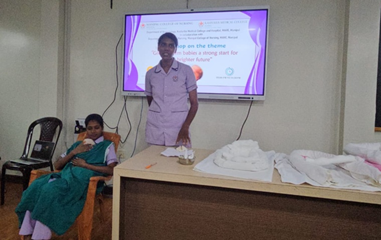 The Department of Child Health Nursing, Manipal College of Nursing, Manipal (MCON), Manipal Academy of Higher Education (MAHE), in collaboration with the Department of Neonatology, Kasturba Medical College (KMC), Manipal, observed the Newborn Week celebration. The theme for this year was “Give Preterm Babies a Strong Start for a Brighter Future”. The program was conducted with an aim to create awareness among the parents and caregivers of newborns and premature babies, healthcare professionals, and students to promote practices that ensure healthy survival of the newborns, thus contributing to attainment of the Sustainable Development Goal (SDG) 3, “Good health and well-being and goal 4, Quality Education.