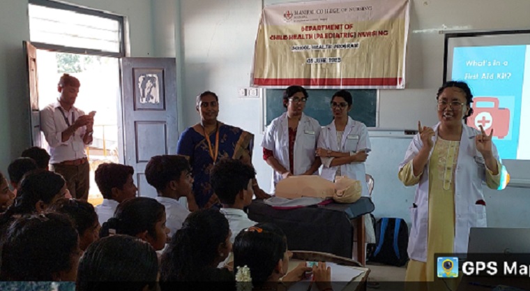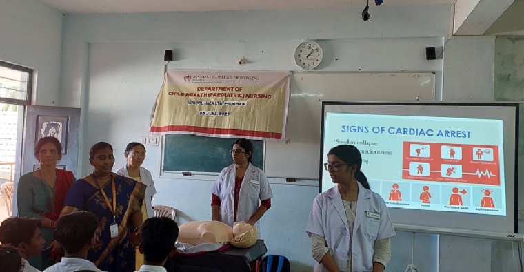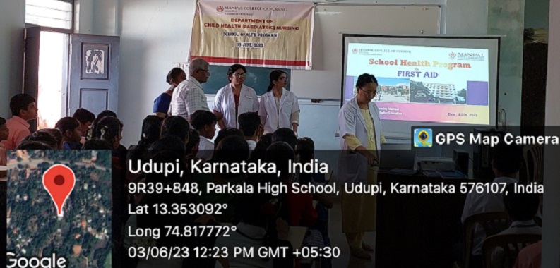 The First and Second Year MSc Nursing students and faculty members from the Department of Child Health Nursing, Manipal College of Nursing (MCON), Manipal Academy of Higher Education (MAHE), Manipal, in collaboration with Rotary Club, Parkala conducted a school health program in Parkala High School, Parkala, Udupi District, Karnataka on 3rd June 2023, between 11.30 a.m. and 1:00 p.m. The school health program was organized under the guidance of Dr. Binu Margaret, Assistant Professor- Selection Grade, Dr. Sangeetha, Assistant Professor- Selection Grade, and Dr. Baby S Nayak, HoD, Department of Child Health Nursing, MCON, Manipal. The aim of the program was to create awareness on “First Aid and Resuscitation” for the students of classes 8, 9, and 10 and faculty members of Parkala High School, Parkala, and Rotary Club members of Parkala Rotary Club. The outreach program contributed towards sustainable development goal 4 (SDG 4) to achieve quality education.