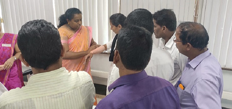 The workshop sessions focused on the basics of first aid, and how to provide first aid in wounds, bleeding, musculoskeletal injury, burns, heatstroke, poisoning, bites, drowning, fainting, seizures and unconsciousness. All teachers had hands-on experience of dressing the wound, applying different types of bandages, splinting the injured body part, providing cardiopulmonary resuscitation, and transferring the victim. There was active participation by all the teachers and they expressed that the workshop will be very useful for them to meet the emergencies in school.