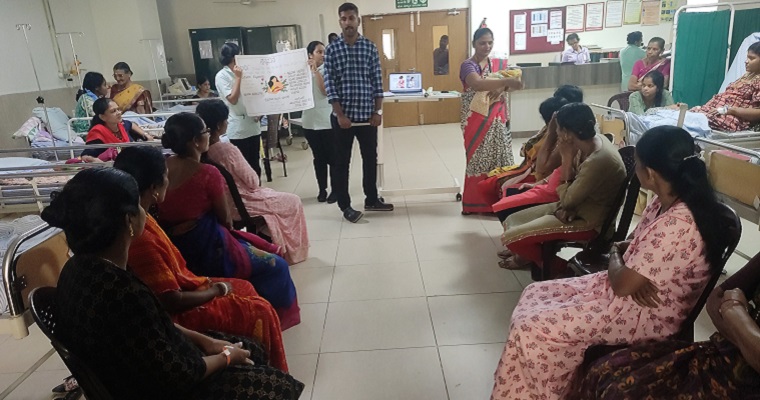 Breastmilk provides all the energy and nutrients that the infant needs for the first months of life, and it continues to provide up to half or more of a child’s nutritional needs during the second half of the first year, and up to one-third during the second year of life. Health Education Committee of SNA 2023-2024 of Manipal College of Nursing, MAHE, Manipal conducted an awareness programme on breastfeeding and newborn care on August 4, 2023, in Women and Child Block, Kasurba Hospital, Manipal. Mr Pradeep and Ms Vina, representatives of the committee from II PBBSc (N) and III year BSc (N) spoke on the importance of breastfeeding, and care of the newborn baby at home and Ms Lisa Aslin, Chairperson of the committee spoke on the immunization schedule. A total of 23 participants actively participated in the session and gave good feedback. The programme was coordinated by the committee advisor Mrs Shobha, Lecturer, Department of OBG Nursing and co-advisor, Mrs Rishmitha, Lecturer, Department of Medical-Surgical Nursing. The programme contributed to SDG 3: Good Health and Well-being.