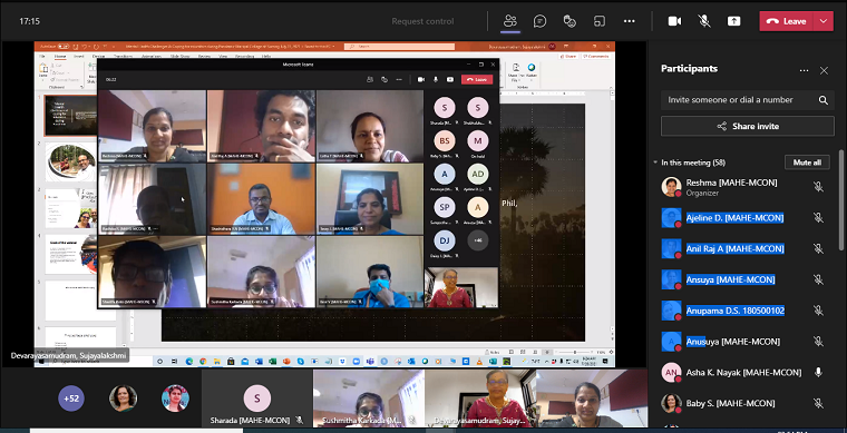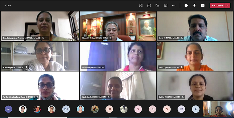 The Continuing Nursing Education committee of Manipal College of Nursing MAHE Manipal, organized a virtual Faculty Development Program on July 27 & 28, 2021 through the MS team platform. The chief guest for the inaugural session Dr. Sharath Kumar Rao K, Dean KMC Manipal, MAHE appreciated the efforts taken by the institution and congratulated Dean and her team for successfully holding FDP. He expressed that FDP helps in coaching faculty to update the teaching, administration, research, and clinical skills. Chief Guest also emphasized the importance of interprofessional collaboration where faculty from different professions work together in teams and collaborate with each other which indirectly enhances students learning during these challenging times.