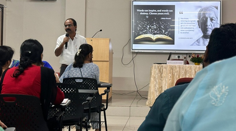 On 25th July 2025, the first session, Power of communication-Unlocking workplace potential, was led by Dr Virupaksha Devaramane, Consultant Psychiatrist, Dr A V Baliga Memorial Hospital, Udupi. He emphasized the importance of human touch, nonverbal communication, and genuineness in communication, highlighting their impact on workplace effectiveness.