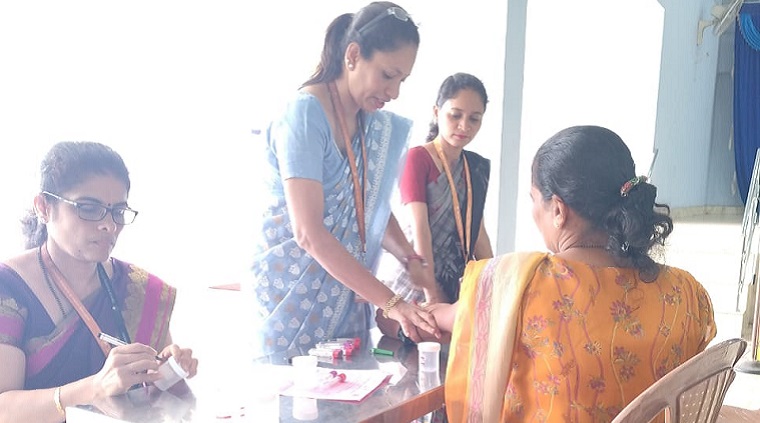 Dr. Leena Sequeira, Principal, Manipal School of Nursing, Manipal was the chief guest for the program. Rtn.Monthu Dsouza, President of Rotary Club Manipura, Rtn. Stany Dsouza, Secretary of the club, and Rtn PHF Kamil Sequeira, Director, Club Service of the Rotary Club were also present. The program started with lighting the lamp and a brief introduction to the health awareness camp by Dr.Leena Sequeira. In the health screening camp height, weight, blood pressure, glycosylated hemoglobin, serum creatinine, urine protein, and lipid profile were assessed to screen people for diabetes and chronic kidney disease.