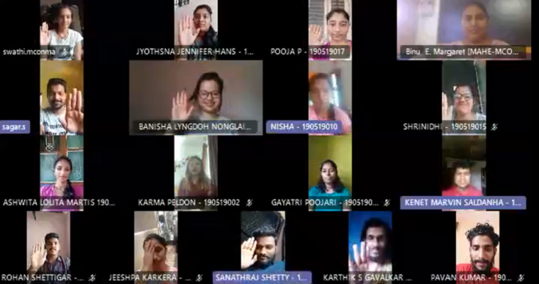 Pledge was taken by 46 faculty & non-teaching staff and 416 students of the college through online mode in MS teams platform on 27/10/2020 at 11 am. Pledge for the faculty was facilitated by Dr Judith Angelitta Noronha, Associate Dean Manipal College of Nursing MAHE Manipal. Class coordinators of respective batches facilitated the pledge for the students. Overall coordination was by Mrs Shalini G Nayak, Assistant Professor, MCON Manipal.