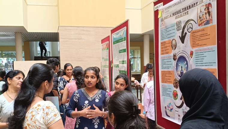 A total of 20 groups competed for the best Research poster presentation, which was evaluated by Dr. Leena Sequeira, Principal of Manipal School of Nursing, MAHE, and Dr. Shashidhara Y N, Professor and Head of Community Health Nursing, MCON, MAHE. The best poster presentation was awarded to Ms Angel Mary Biju, Mr Midhun S Nair, Mr Arnold Mokshit Ammanna, Ms Simmy Elizabeth Baby, Ms Jemimah James David, Preethi Immanuel, Ms Adithya Gireesh, Ms Annette Shibu, and Ms Joshna Jose.