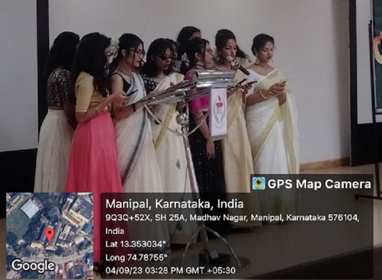 Followed by Sadhya, the afternoon celebration was from 3.00 to 5.00 pm at I floor Dr TMA Pai Hall, KMC, Manipal. All the students & faculty were given a warm welcome and the program started with a prayer song by Ms. Kezia & group. The message of Onam was given to the gathering by Mr. Srivishnu from first Year BSc Nursing, who was dressed up as a Mahabali. The celebration continued with an Onam song sung by Angel & Group, a ’Thiruvadhira' dance by Hanna & Group, which is the traditional dance of Onam, followed by dance performances by Manal & Group and Emilyn & Group. Competition on MCON Vanitha and MCON Sreeman was conducted and won by Ms. Angeline and Mr. Mathew Shijo from I Year. BSc nursing. Dr. Tessy Treesa Jose, Associate Dean, delivered an Onam Day Message on the real meaning of the Onam celebration and how it should be performed. Games were conducted for the students. Dr. Judith A. Noronha, Dean MCON Manipal did the release of the Magazine - Dhwani. A tug of war was conducted batch-wise, and the first year won the prize. Mr. Nickhil Castelino, the President of the Student Nurses Association, delivered the vote of thanks. All the students participated with great enthusiasm and enjoyed the Onam Celebration. The master of ceremony was Ms. Jeeva & Ms. Nandhana from the second year. BSc Nursing. The program ended at 5:30 p.m.