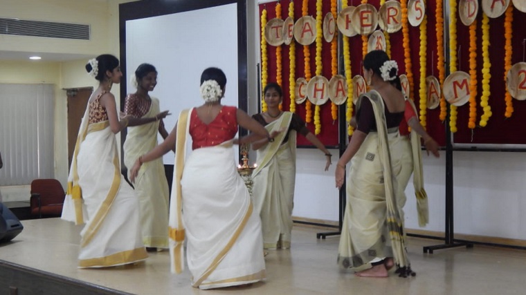 Chamayam, the Onam celebration of Manipal College of Nursing, Manipal was begun with the official welcoming of ‘Mahabali’ in its traditional way. As an introduction to the Onam celebration, Mr. Anil Raj, Assistant Professor, Department of Medical-Surgical Nursing delivered the message on Onam and narrated the story of Mahabali. Ms. Rukku and the group performed Thiruvathira, the cultural dance of Kerala. The MCON Vanitha and Sreeman competitions were conducted for students and faculty. Among students, Ms. Jeslyn Joseph, III year BSc Nursing won‘MCON Vanitha’ title and Mr. Midhun S Nair from I year BSc Nursing won the ‘MCON Sreeman’ title. Among the faculty, Mr. Anil Raj won the title MCON Sreeman and Mrs. Sheela Shetty won the MCON Vanitha title. This was followed by the Onam song sung by Ms. Sarah and the group from I year BSc Nursing. The group dance was performed by all the IV year BSc Nursing students. Lemon and spoon's game was conducted to the faculty, 1st place was bagged by Dr. Sushmita Ramona Karkada, 2nd place by Dr. Melita Shalini, and 3rd place by Mrs. Laveena Barboza. Mr. Sohan Lawrence Fernandes, SNA President, delivered the vote of thanks. A Tug of war was also arranged for the students as batch wise competition, students participated in the competition with great enthusiasm. The program came to an end at 5:00 pm and sweets were distributed to the students.