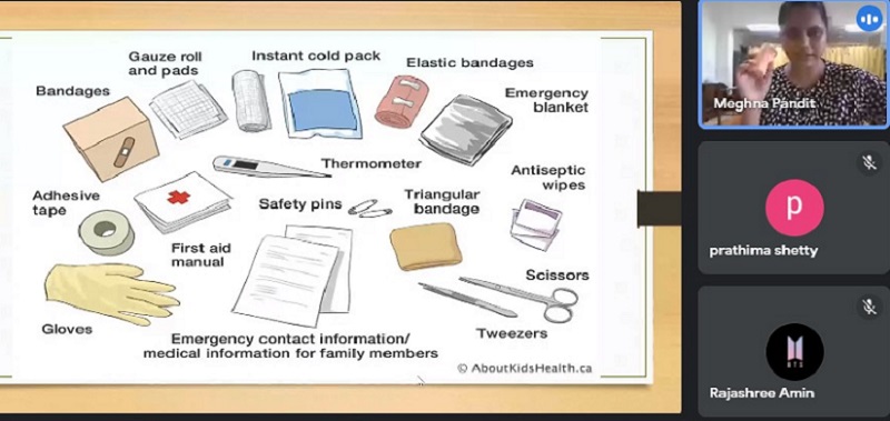 As an outreach program, the First Year MSc Nursing students from Department of Child Health Nursing, Manipal College of Nursing (MCON), Manipal Academy of Higher Education (MAHE), Manipal, under the guidance of Dr Binu Margaret, Assistant Professor, and Dr Baby S Nayak, HoD, Department of Child Health Nursing, MCON, Manipal organized a virtual school health program on 25th August 2021, between 3:00 p.m. and 4:30 p.m. The main aim of the program was to create awareness on “First Aid” for the students of classes 8, 9, & 10 and faculty members of Green Park Central School, Hiriadka. The students and faculty members were sensitized on the preparedness and management of handling various emergencies that they encounter in their daily life activities through the Google meet platform.