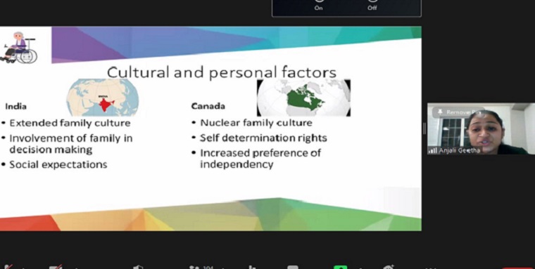 Followed by the inaugural ceremony, the lecture series-1 on Indo- Canadian Perspectives: Care of the elderly was delivered by the speaker Mrs Anjali Kochukuttan Pillai Geetha, Registered Nurse in Adult Mental Health Unit, Civic Hospital, Brampton, Ontario, Canada. Mrs Anjali enlightened the participants by comparing the incidence and differences in structural, cultural, personal and socio-economic factors between India and Canada. Moreover, she associated the health concerns and interventions for the issues such as fall prevention, dementia, depression, suicide, abuse prevention and pressure ulcer in both countries. Furthermore, she focused on the care of the elderly during the pandemic with instances from her clinical experience. It was a useful and interactive session, where participants could clarify their doubts related to the topic.