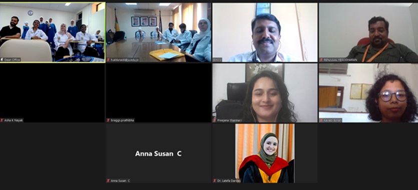 The opening session focused on the mental health care perspectives, prevalence, training settings, cultural aspects, and stigma across the respective country. The faculty from each country presented their perspectives, followed by a discussion among students from all three countries regarding the perception of stigma, cultural aspects, and aggression management in mental health settings in their country. There was also a virtual simulation session on aggression management by the faculty and students of SQU, Oman. Students from all three universities actively participated in the debriefing session related to the simulation. Feedback was taken from both the faculty and students. The overall programme was coordinated by Dr Blessy Prabha Valsaraj, Assistant Professor, SQU, Oman, Dr Binil V, Additional Professor and Head, Department of Psychiatric (Mental Health) Nursing, MCON, MAHE, India, and Dr Letefa Ali Dardas, Vice Dean, The University of Jordan School of Nursing.