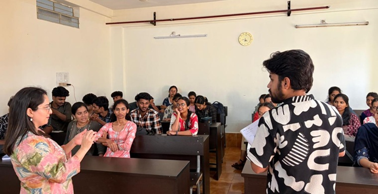 The resource person for the session was Ms. Preejana Sharma, PhD Scholar, Department of Fundamentals of Nursing, Manipal College of Nursing, MAHE, Manipal. The session aimed to familiarize participants with the fundamental concepts of nursing research and to initiate their interest in pursuing research in the future. Ms Preejana engaged students through an interactive brainstorming activity, where participants worked in groups to identify common nursing problems and propose possible solutions. Students actively participated, shared ideas, and discussed how simple observations can evolve into meaningful research topics. The session also aligned with SDG 3 (Good Health and Well-Being) and SDG 4 (Quality Education) by encouraging evidence-based practice and promoting research-oriented learning.