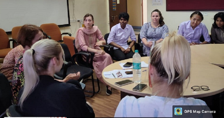 Students from MAHE and EdgeHill Universities discussed the course, curriculum planning, and availability of student support systems including counseling, guidance, extra classes, and library facilities. This session was facilitated by Dr. Toni Bewley, the Adjunct Faculty of MCON and Senior Lecturer, School of Nursing, Edge Hill University, UK, and Dr. Radhika R Pai, Assistant Professor from MCON.