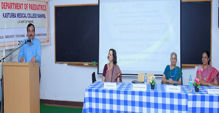 The Departments of Child Health Nursing and Community Health Nursing, Manipal College of Nursing (MCON), Manipal and the Department of Paediatrics, Kasturba Medical College (KMC), Manipal, Manipal Academy of Higher Education (MAHE) in collaboration with the Indian Academy of Pediatrics (IAP), Udupi District Branch observed ‘World Breastfeeding Week 2022’ on the theme “Breastfeeding Friendly Hospitals in India and Step up for breastfeeding - Education and Support” with various activities conducted from 1st to 7th August 2022. The programme was conducted with the aim to advocate breastfeeding-friendly practices in hospitals and create awareness among health care professionals and the public to support breastfeeding.