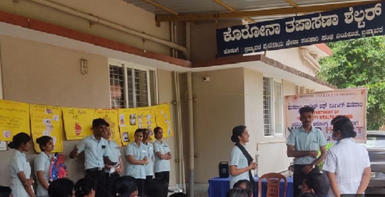 Mr. Puneeth and the team performed a role play in light of world heart day and conveyed an important message to the crowd assembled. Dr.Ajith Kumar with Mr. Rakesh Datta and Dr. Ansuya B. Asst.Prof. Dept of Community Health Nursing, MCON, and Mr. Shyamchand, II Year MSc nursing student, demonstrated the Cardiopulmonary resuscitation procedure and clarified the doubts raised.