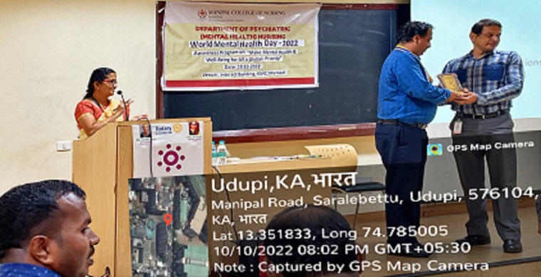 The Department of Psychiatric (Mental Health) Nursing, Manipal College of Nursing Manipal in collaboration with the Rotary Club, Manipal Town have organized a World Mental Health day program on October 10, 2022, between 6-8 pm at Interact building, KMC, MAHE Manipal. The program was started with a welcome address by Rtn. Nithyananda Nayak, President, Rotary Club, Manipal Town. The theme of World Mental Health day, 2022 is “Make mental health and well-being for all a global priority” was introduced by Dr. Binil V, Associate Professor, Department of Psychiatric (Mental Health) Nursing, Manipal College of Nursing, MAHE, Manipal. The program was followed with a skit performed by B.Sc. Nursing students (3rd Year). The chief guest and the speaker for the event was Dr. Anil Kumar MN, Associate Professor, Department of Psychiatry, KMC, Manipal. He addressed the audience with his excellent speech on creating awareness in public regarding various mental illnesses, their causes, management, and tips to instill positive mental health. The speech was well appreciated by the audience. A total of 50 people have witnessed the program. Mrs. Savitha Prabhu, Assistant Professor, and coordinator of the program delivered the vote of thanks.