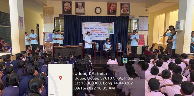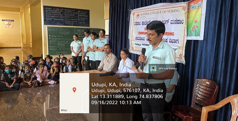 World Patient Safety Day was observed by the faculty of the department of community health nursing and students of final year BSc Nursing, Manipal College of Nursing, MAHE, Manipal on September 16, 2022, from 10 am to 11.30 am at Morarji Desai Residential School, Patla, Udupi.