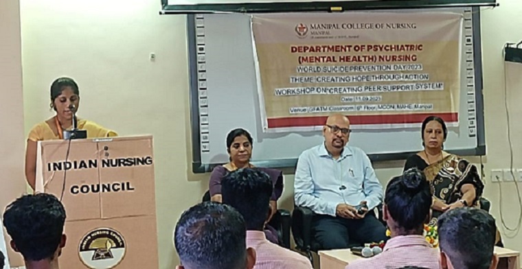 Department of Psychiatric (Mental Health) Nursing, Manipal College of Nursing (MCON), MAHE (MANIPAL ACADEMY OF HIGHER EDUCATION), Manipal, in collaboration with Dr. A. V Baliga Memorial Hospital, organized a workshop for the college students of Udupi district on “Prevention of Suicide: Creating Peer Support System” on 11.09.2023 at MCON. Twenty-three students participated in this workshop. Dr Judith A. Noronha, Dean, MCON, Dr P V Bhandary, Medical Director, Dr A V Baliga Memorial Hospital, Doddanagudde and Dr Tessy Treesa Jose, Associate Dean and Head of the Department of Psychiatric Nursing, MCON, MAHE presided over the inaugural program of the workshop. The dignitaries emphasized the significance of the day, the impact of suicide on everyone’s life and the need to create awareness in our society. Experts from the field deliberated on topics like lay counselling, suicide myths & and facts, stress management, Question Persuade and Referral and peer communication. The workshop comprised activities such as role plays, demonstrations, and interactive sessions. Participants of the workshop expressed that such workshops are the need of the hour especially for young adults like them. The day was concluded with the distribution of certificates and feedback from the participants. A street play on the day’s theme was also performed by 2nd-year PBBSc nursing students at the outpatient department of Kasturba Hospital, Manipal between 9.30 am to 10.00 am. Around 85 people who attended the OPD benefitted from the street play and appreciated it.