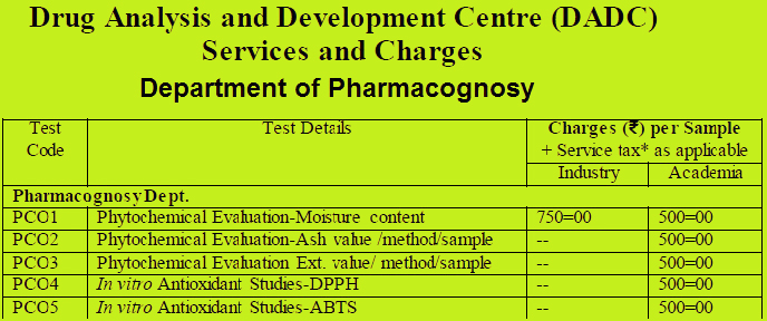 The department pf Pharmacognosy provides valua added services to academic and industrial setups on nominal charges.