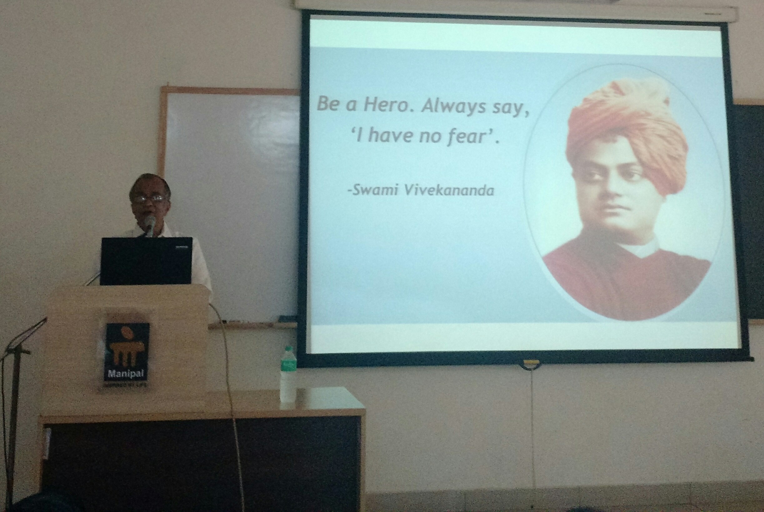 MCOPS hark back to and honoured Swami Vivekananda on his 153rd birthday, the great philosopher and philanthropist who fetched accolades from east and west to India, by spreading the message and spirituality of Hinduism and Humanity across the globe. Dr C Mallikarjuna Rao, Principal, MCOPS addressed the faculty in a meeting held at Dr Gundu Rao Lecture Hall, MCOPS. Dr N Gopalan Kutty, the senior most Professor of MCOPS delivered a memorial lecture on "Swami Vivekanada-His Philosophy and Teachings" which began with a quote of Swami Vivekanada, "Be a Hero. Always Say, I Have No Fear". The speaker in his opening remark applauded the endeavours of Government of India to honour the people whose life has been dedicated for the country. The talk surveyed through the life and teachings of Swamiji, his contributions to the world which encompassed new understanding of religion, new view of man, new principles of morality and ethics, bridge between east and west and concept of universal religion. The speaker also echoed Swamiji against intolerance, arrogance of wealth and power, fall in moral standards, poverty and sufferings. The talk ended with an exhortation to the public, 'Rise, Awake and Stop Not Until the Goal is Reached". Dr J Venkata Rao, Professor and Head of the Department of Pharmaceutical Biotechnology, MCOPS, delivered the concluding remarks.
