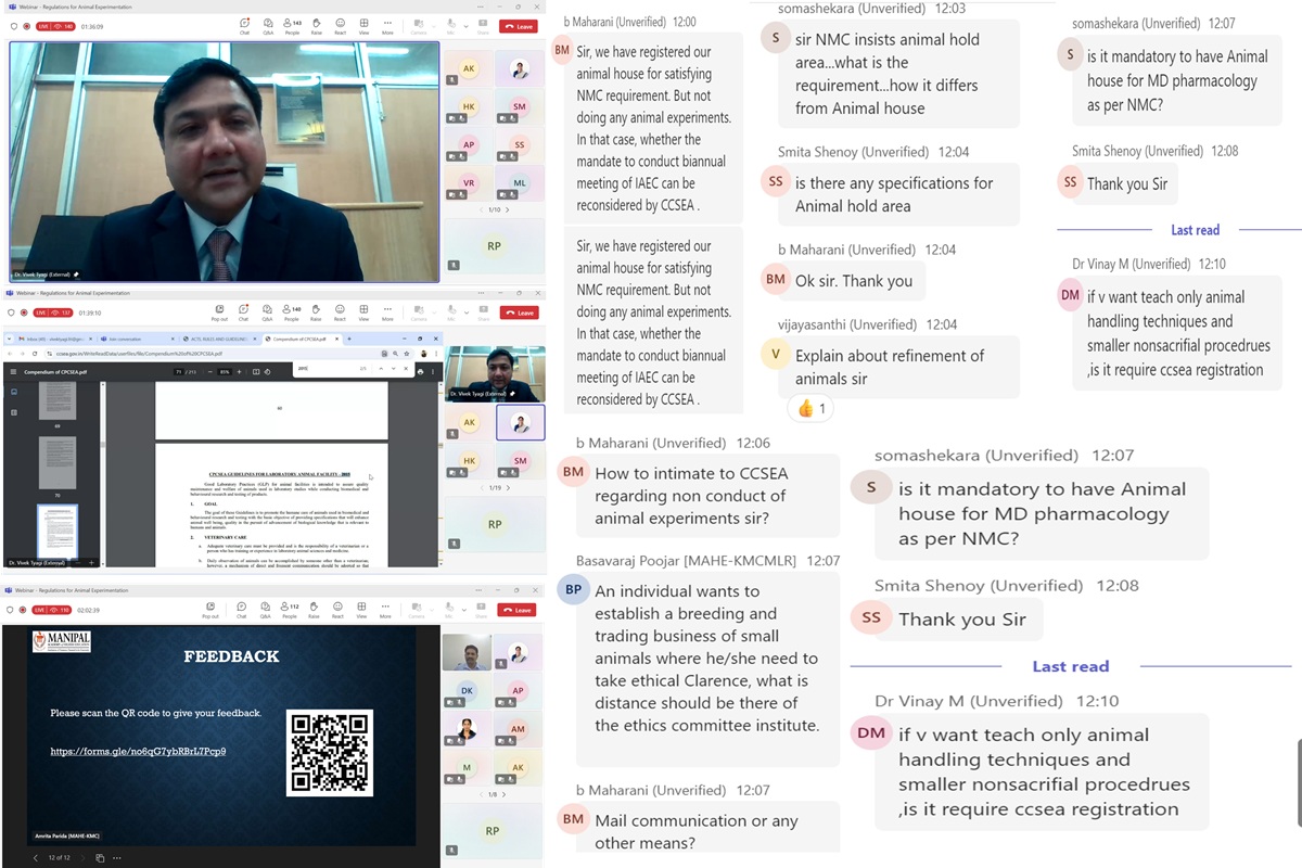 A webinar titled "Regulations on Animal Experimentation" was successfully conducted on 2 December 2024 from 11.00 am to 1.00 pm by CARET in association with MCOPS and Research Ethics and Regulation Vertical of KMC Manipal, drawing over 300 registered participants. The program aimed to provide an in-depth understanding of animal experimentation regulations and ethical guidelines, which are crucial for researchers and academicians working in the field.
