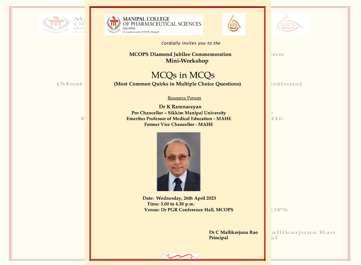 - MCQs in MCQs by Dr. K Ramnarayan, Pro-Chancellor, Sikkim Manipal University