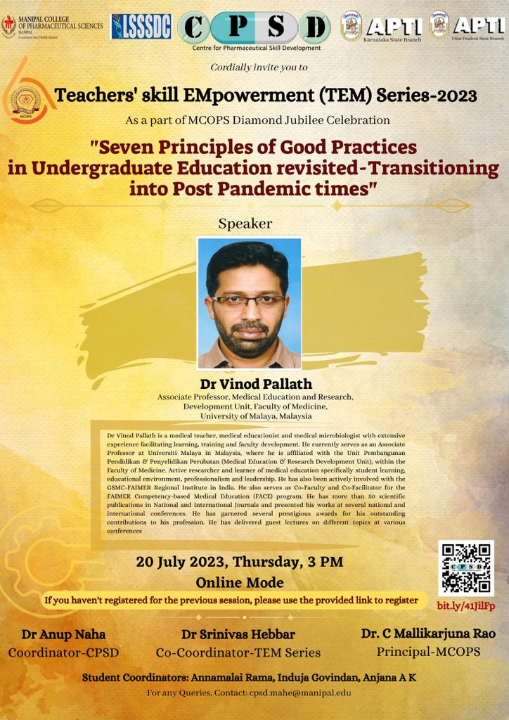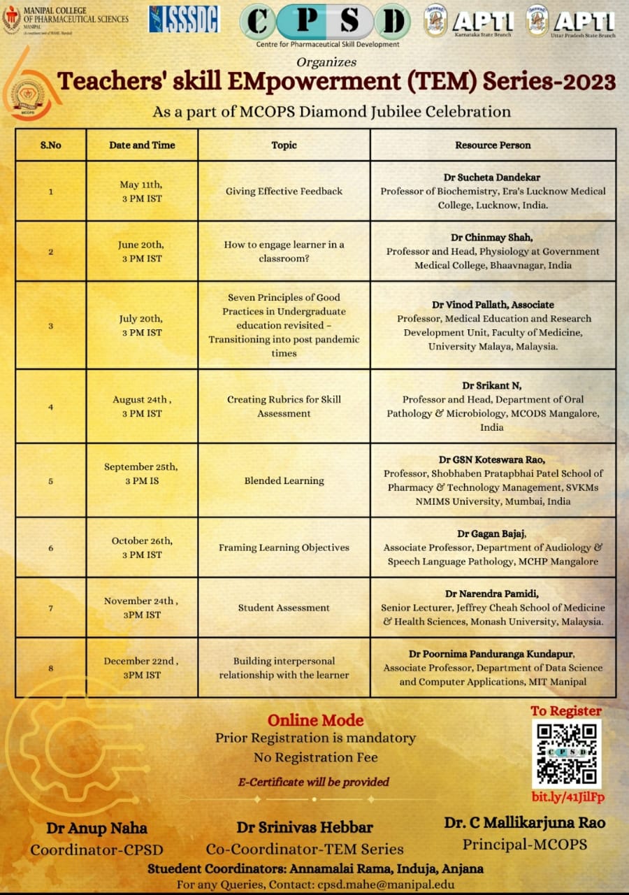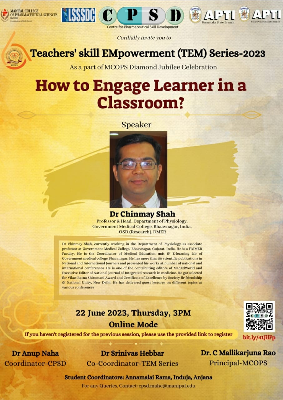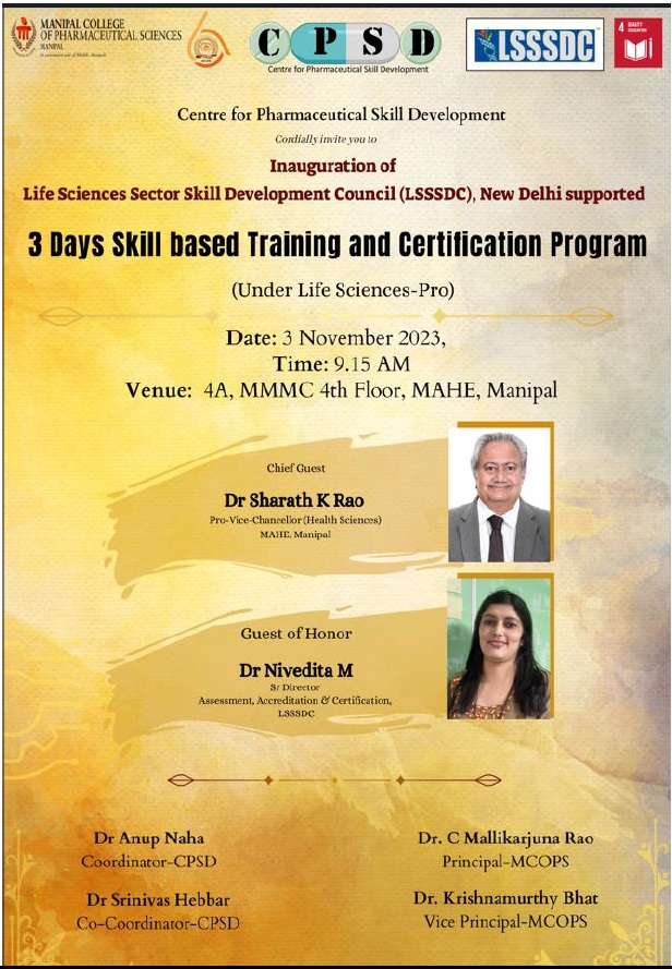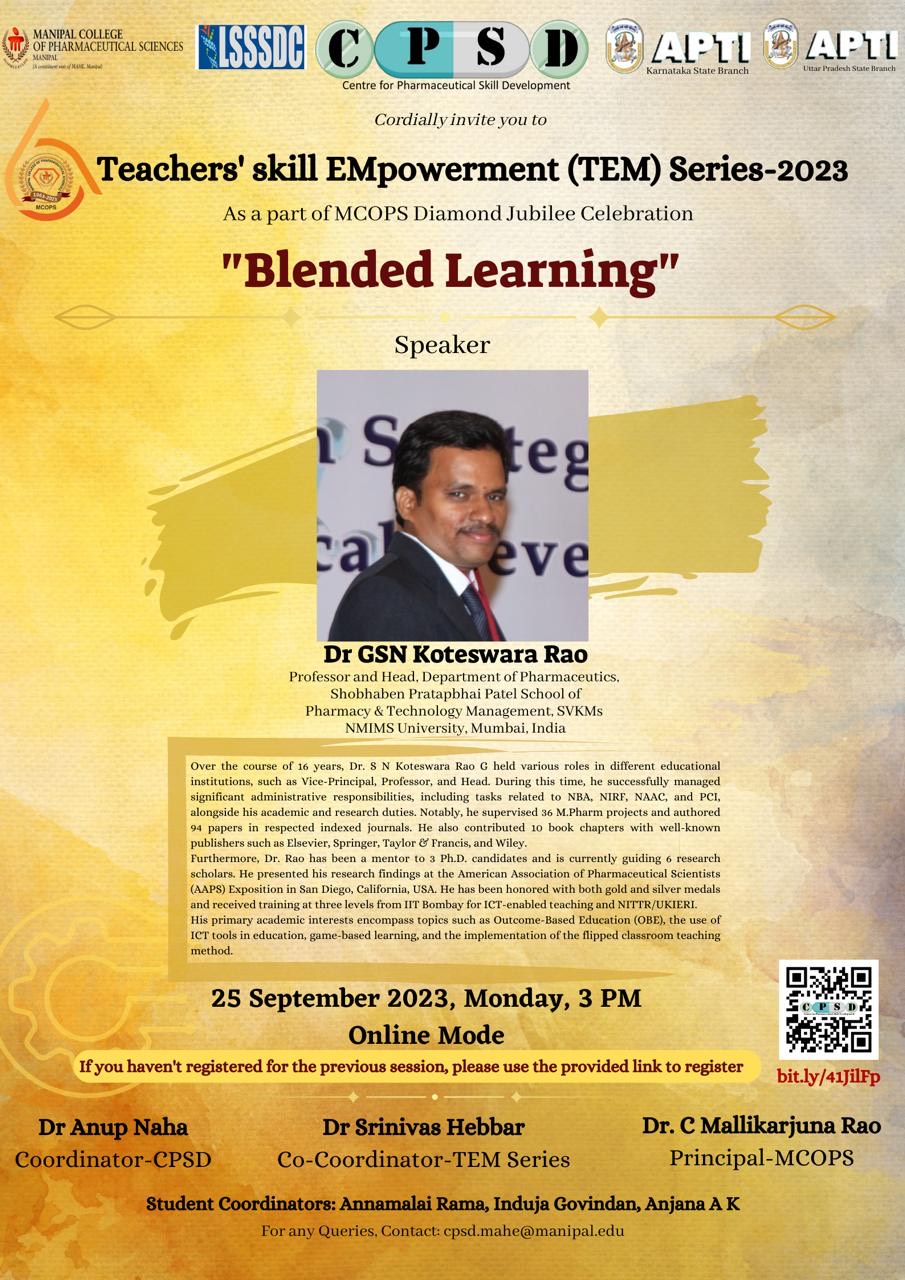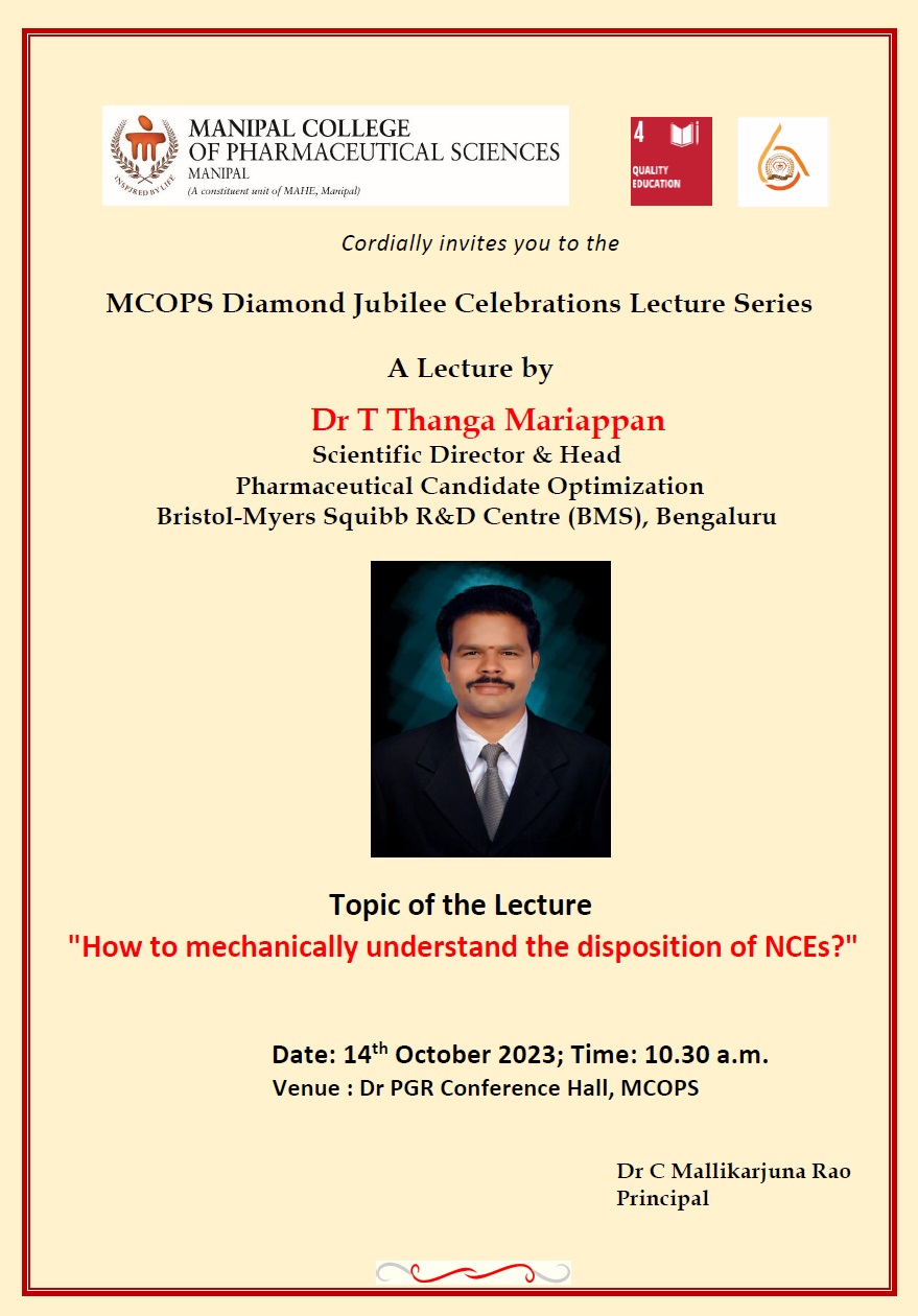 MCOPS Diamond Jubilee Commemorative Workshop on "Quality and Regulatory Compliance of Pharmaceuticals - An overview” - 24 March 2023