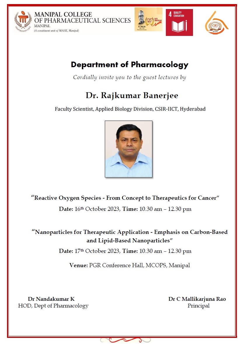 Lecture by Dr Rajkumar Banerjee, Faculty Scientist, CSIR-IICT, Hyderabad - 16 October 2023