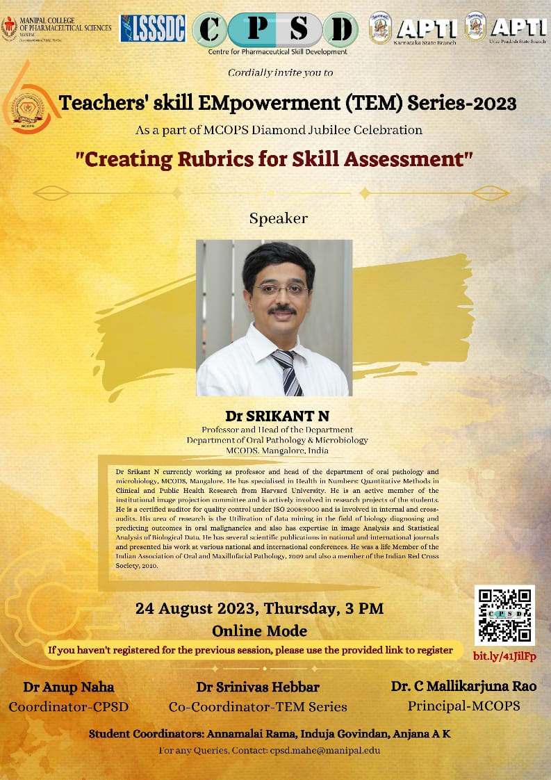 4. Dr Srikant N, Professor & Head, Dept. of Oral Pathology & Microbiology, MCOPS, Mangalore - 24 Aug 2023