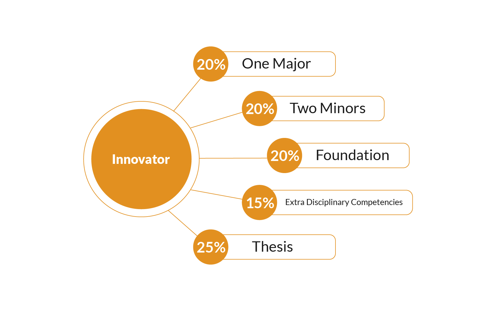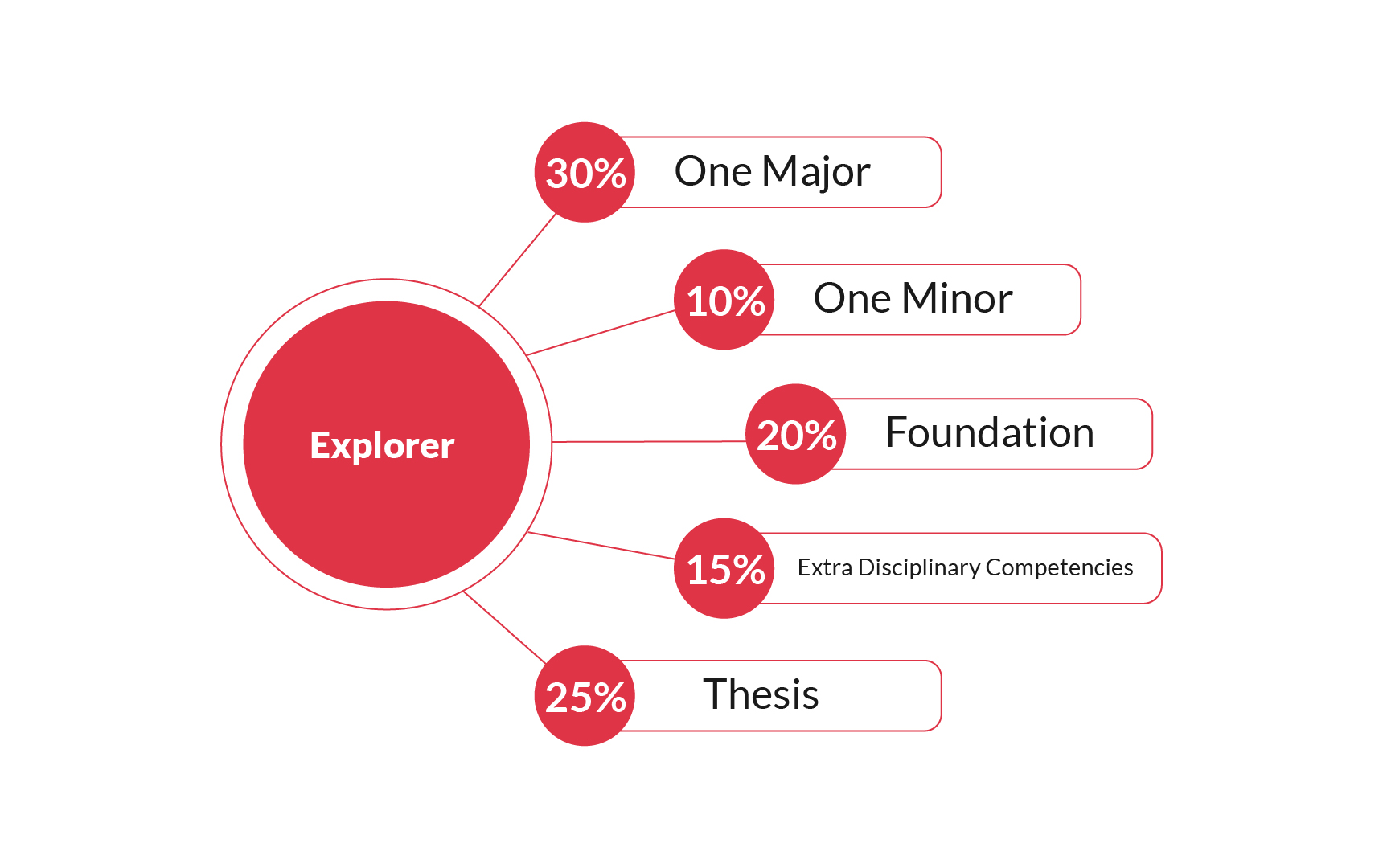 At the end of the first year, students decide between three learning pathways to study Majors, Double Majors, and Minors by opting for one of the following: Explorer (1 Major + 1 Minor), Innovator (1 Major + 2 Minors) and Consolidator (2 Majors).