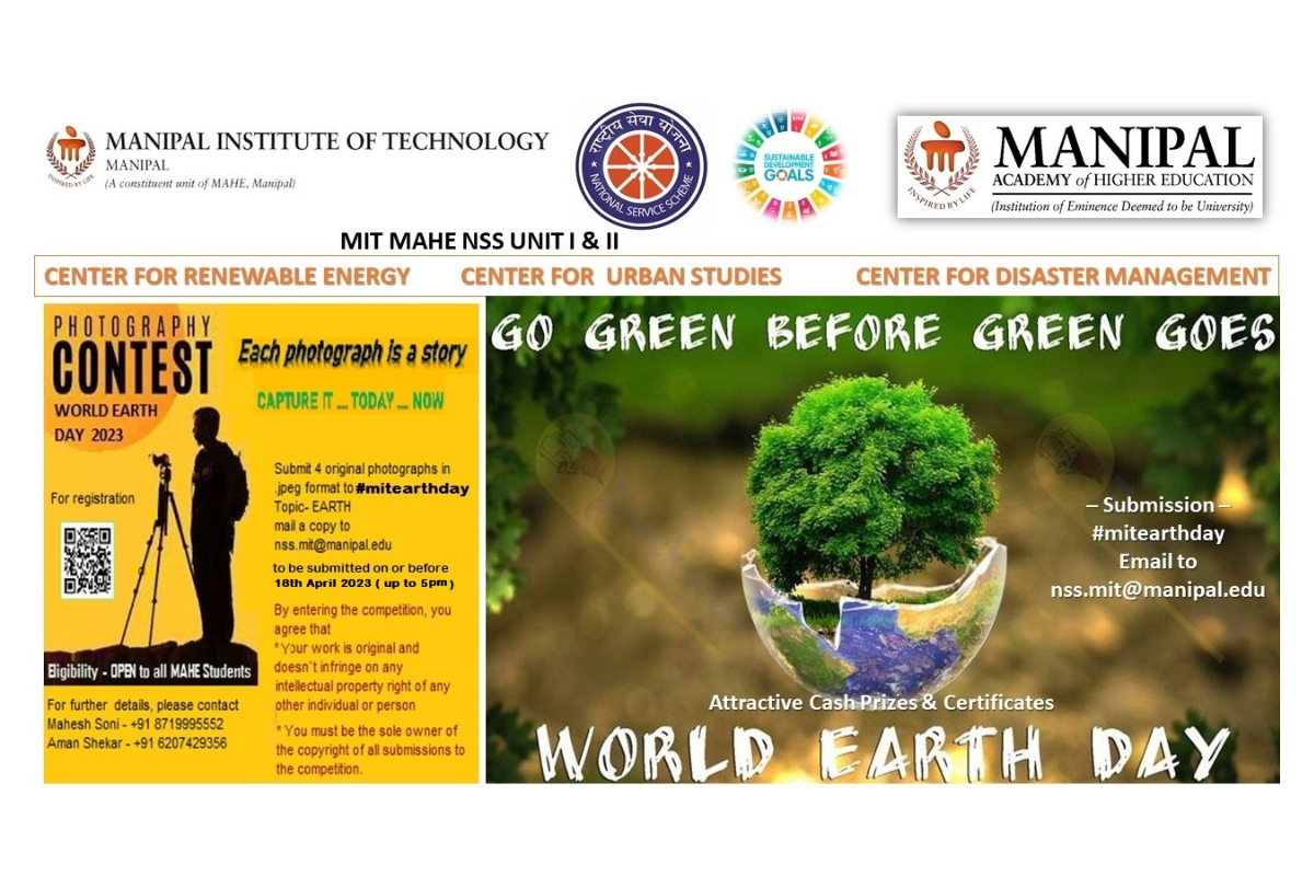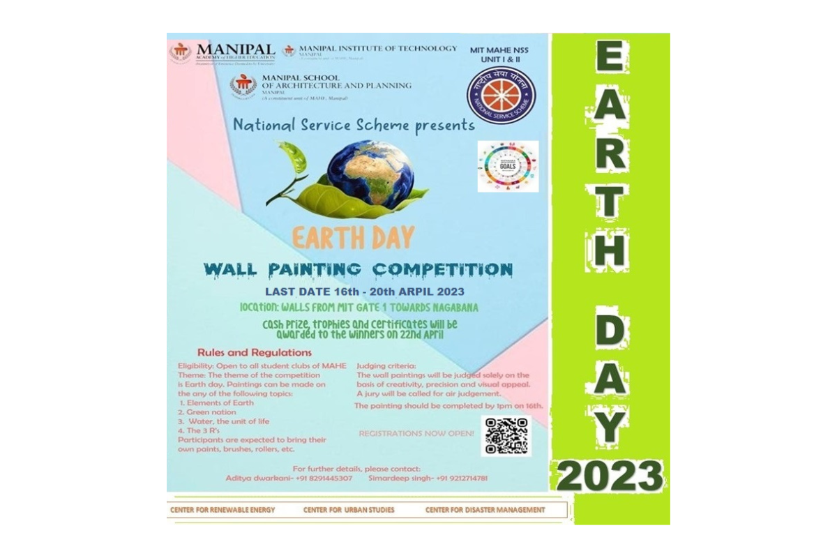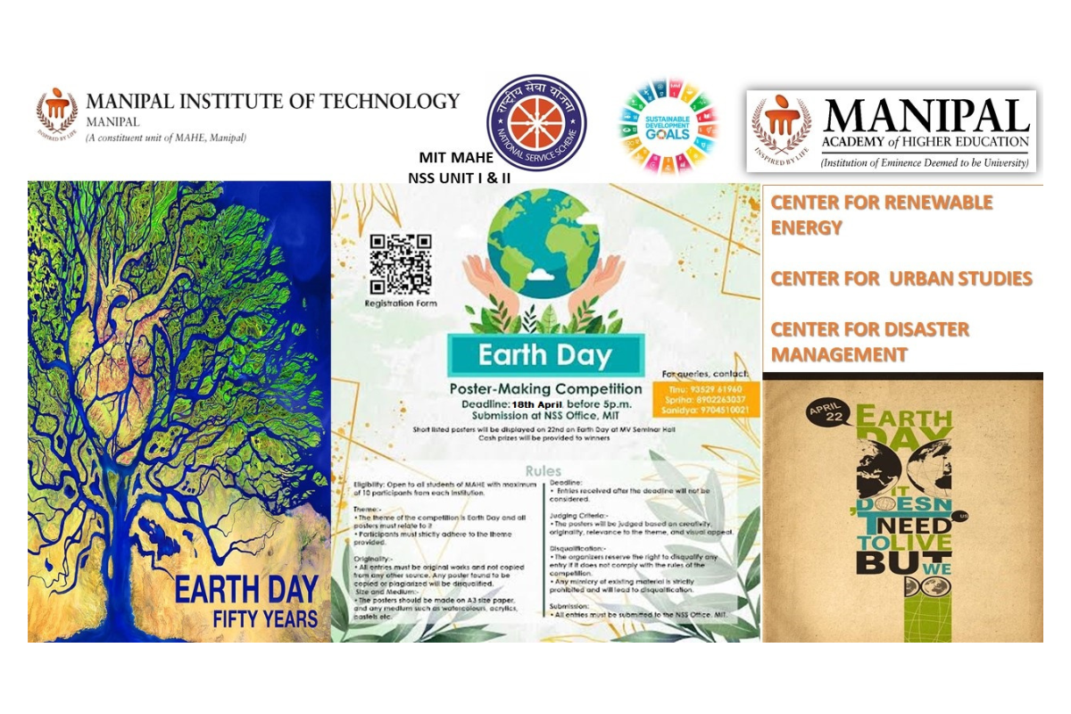 We are excited to share with you details about a special event planned in honour of World Earth Day jointly organised by Manipal Institute of Technology (MIT), Manipal and Manipal School of Architecture and Planning (MSAP) Manipal in association with Department of Civil Engineering MIT, Centre for Disaster Management, Centre for Urban Studies, Centre for Renewable Energy. As educators and responsible citizens, we believe that it is our responsibility to raise awareness of the environmental challenges the world faces and to take concrete action to protect our planet.