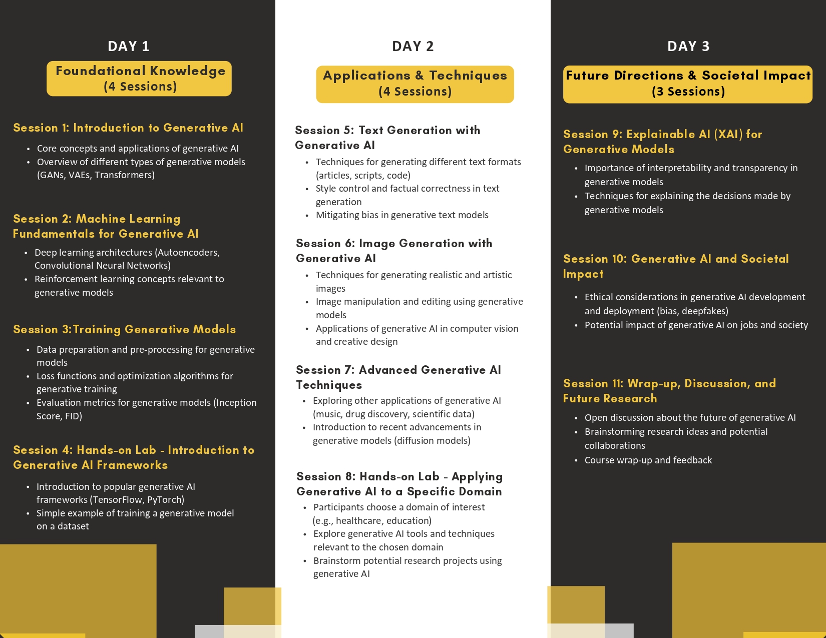 The Department of Information and Communication Technology is organizing a Faculty Development Program (FDP) on Exploring Generative AI to gain foundational knowledge, practical skills, and insights into future trends. Learn about core concepts, machine learning fundamentals, and training generative models, with hands-on sessions using popular AI frameworks. Explore advanced applications in text and image generation and discover recent advancements in the field. Understand the societal impact and security considerations of generative AI.