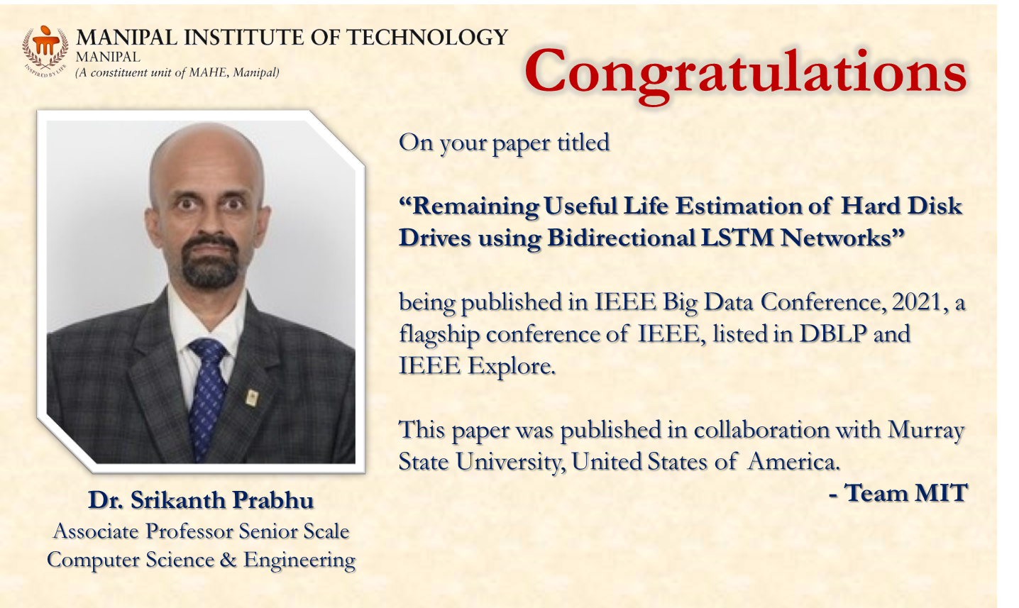 Heartiest congratulations to Dr. Muralikrishna H from the Department of E&C and the entire team for securing the prestigious grant for the project titled "InDyslexiaCare: AI-based Assistive Technology for Dyslexic Children in Indic Languages." This funding has been awarded by IIT Mandi iHub and HCI Foundation, located at IIT Mandi, Himachal Pradesh, under the Department of Science and Technology (DST)’s NM-ICPS (National Mission on Interdisciplinary Cyber-Physical Systems) scheme.