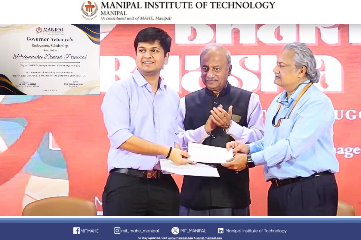Priyanshu Panchal, a B.Tech (DSE) student at MIT, Manipal, has been honored with the Governor Acharya Award for his outstanding academic and co-curricular achievements.