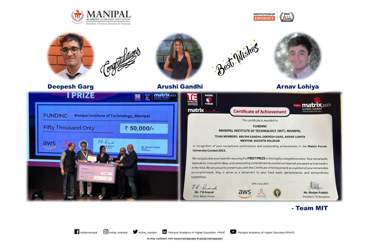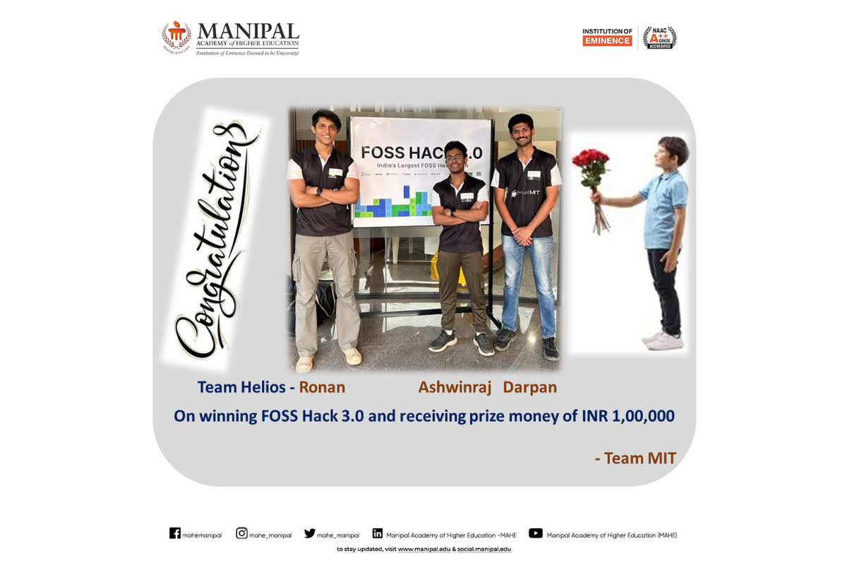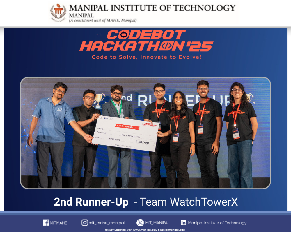 Heartiest congratulations to Team COD3INE on this outstanding achievement, which reflects MIT Manipal’s spirit of innovation, excellence, and leadership in emerging technologies.