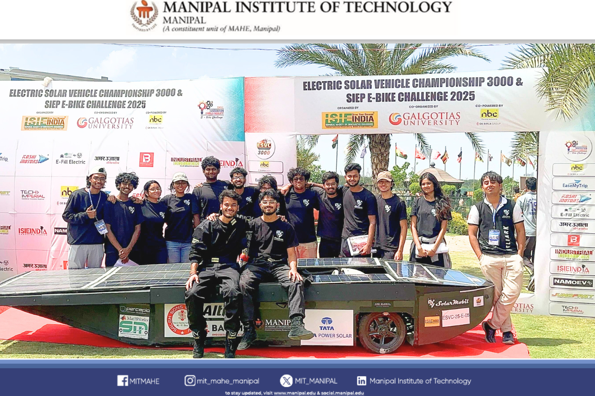 In a brilliant display of innovation and engineering finesse, Team SolarMobil from Manipal Institute of Technology carved a name for itself at the Electric Solar Vehicle Championship 2025, held in Greater Noida from March 27 to April 2. Competing among the finest minds across the nation, the team not only raced ahead with the Fastest Car of the event, achieving a remarkable top speed of 95 kmph, but also swept several prestigious awards.