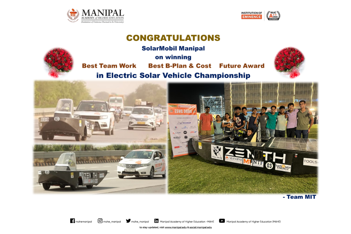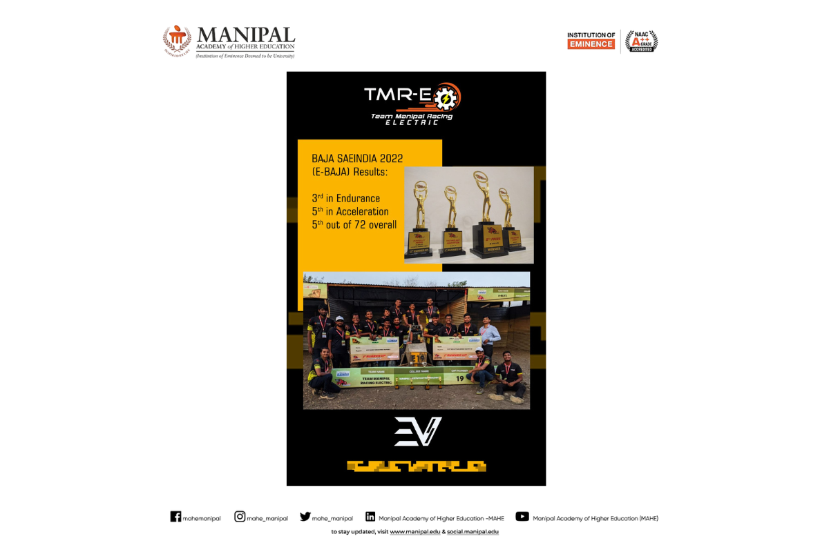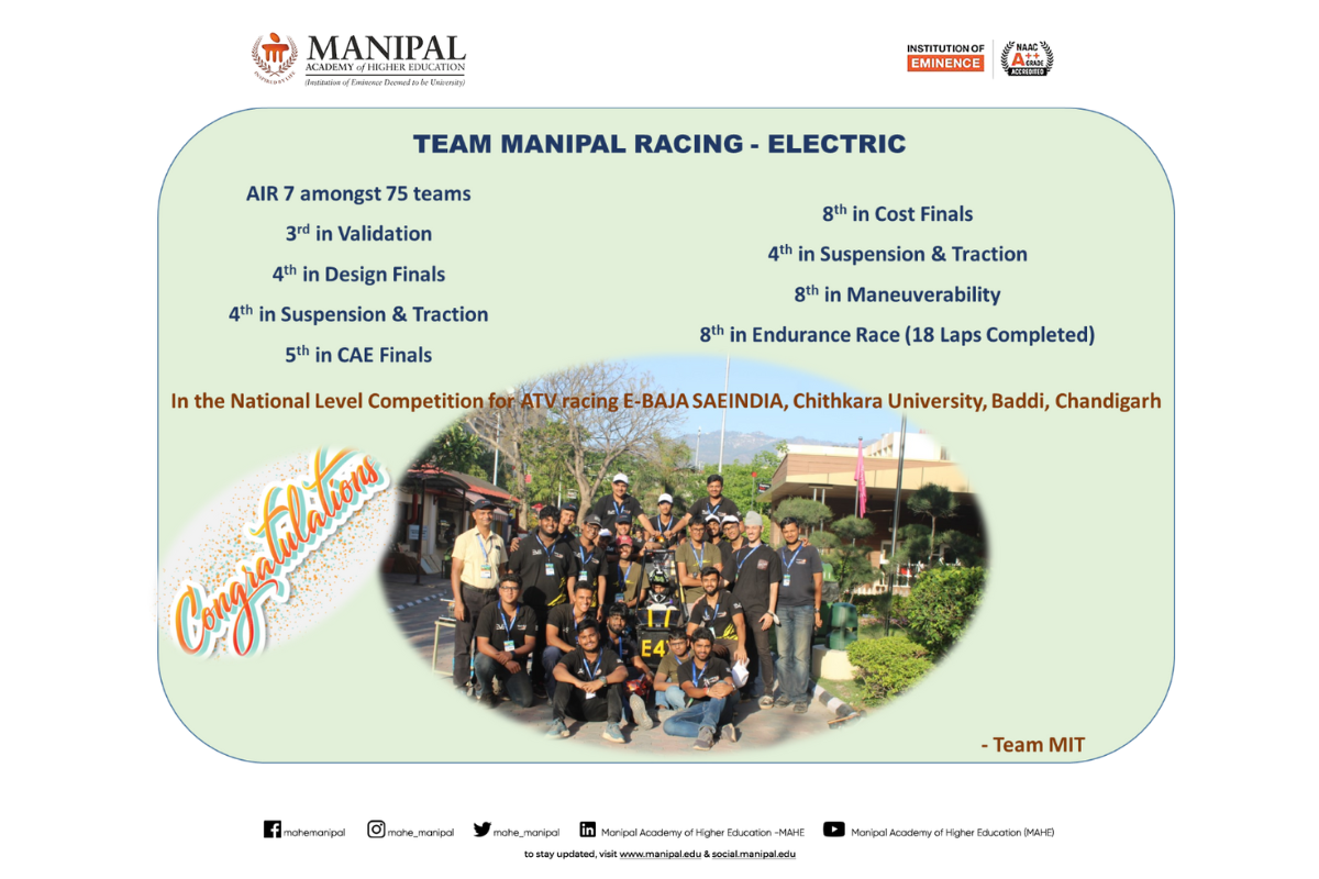 This achievement highlights MIT Manipal’s strong focus on hands-on learning, research, and innovation in the field of electric mobility and motorsports engineering. Congratulations to Team Moto Manipal on this stellar performance.