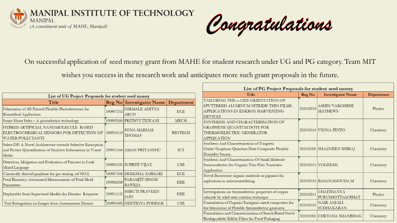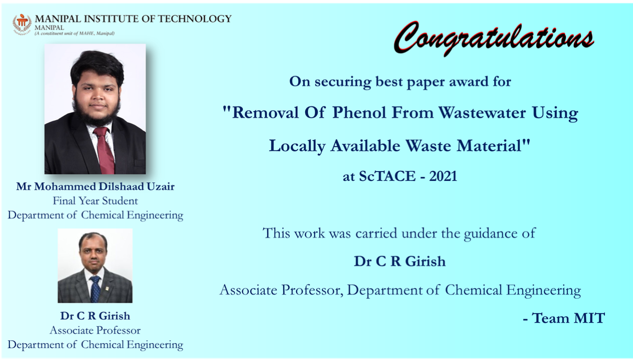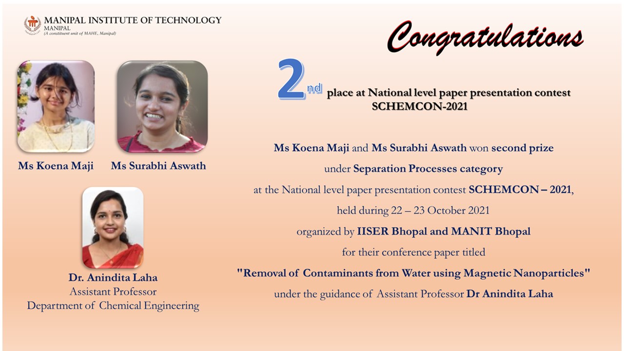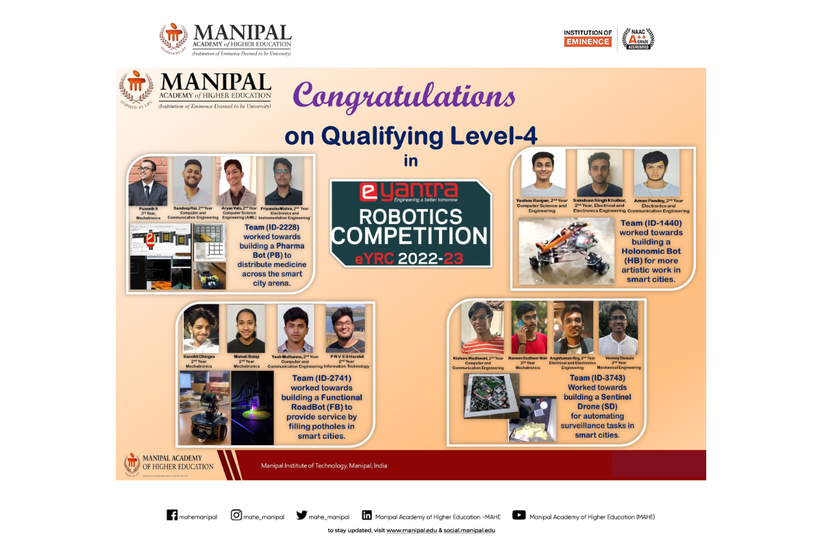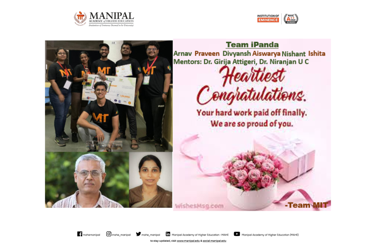 Congratulation to the team with Mr. Mukund Kumar Menon (Instrumentation and Control Engineering), who served as the team mentor, and to faculty advisor Dr. Nisha P. Shetty.