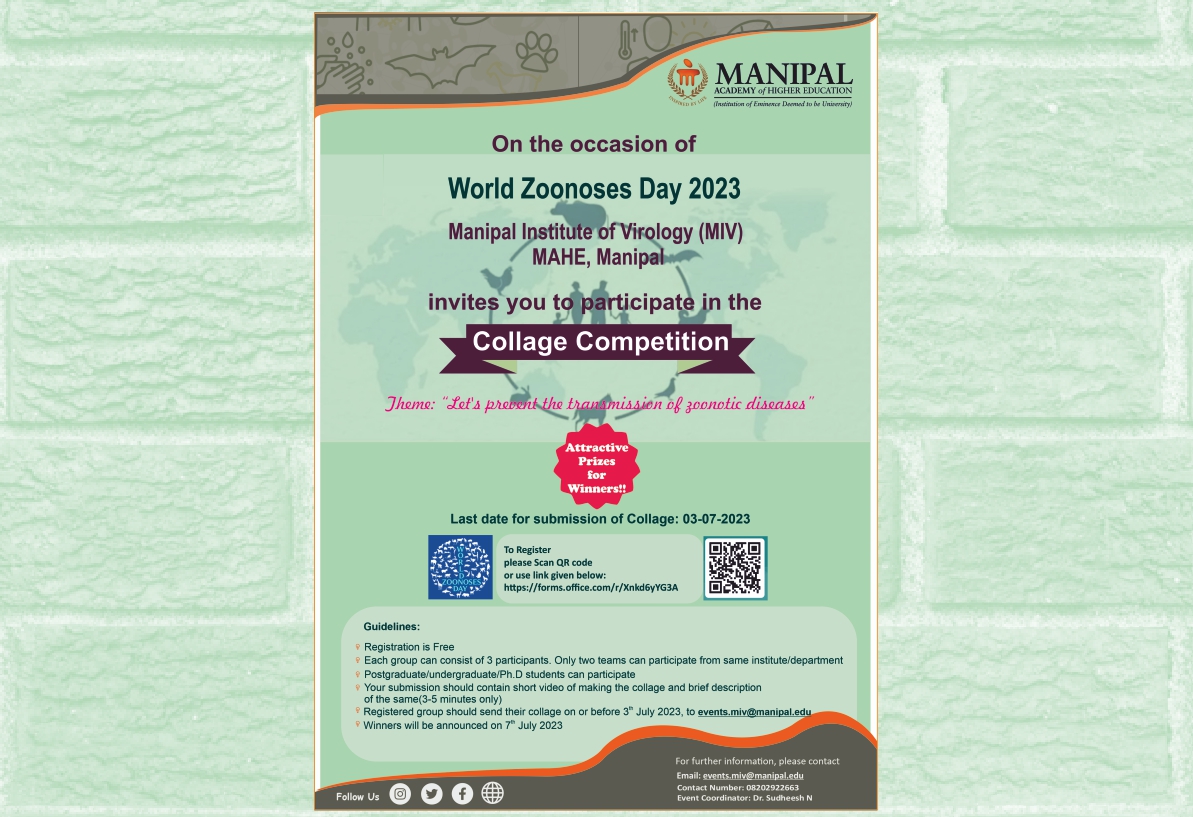 Manipal Institute of Virology (MIV), MAHE is organizing Collage Competition in accordance with World Zoonoses Day 2023.