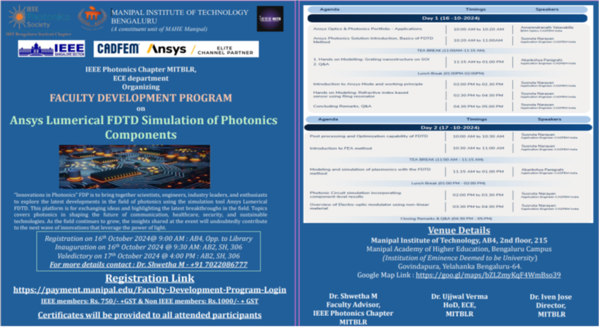 Faculty Development Program / Hands-on workshop on Ansys Lumerical FDTD Simulation of Photonics Components - DEPARTMENT OF ELECTRONICS AND COMMUNICATION ENGINEERING In association with IEEE Photonics Student chapter MITB & CADFEM