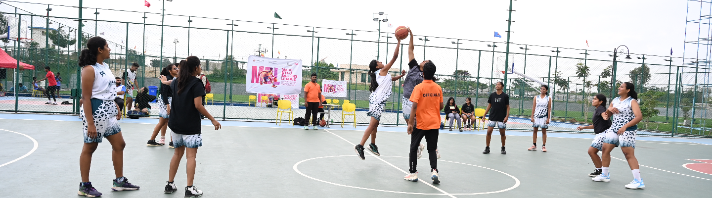 - 2 world-class basketball courts and 1 practice basketball court with colourful synthetic flooring