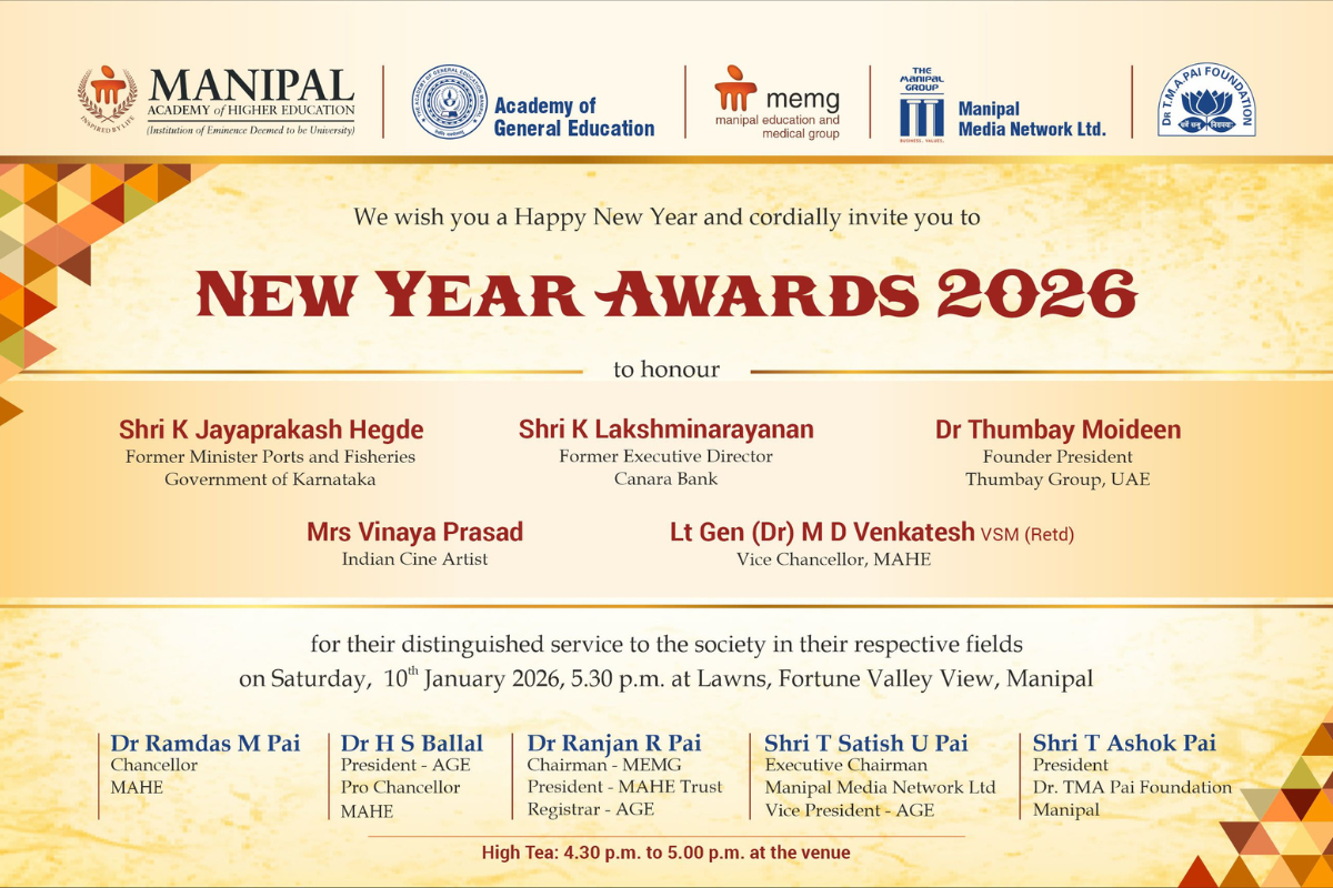 Academy of General Education, MAHE, MEMG and Manipal Media Network Ltd, Conducts “New Year Awards 2022” honouring eminent personalities for distinguished services
