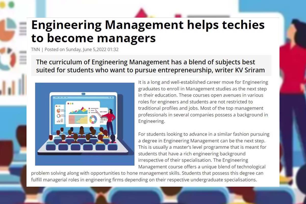 In the article, Dr Sriram talks about Engineering management and how it helps engineers become managers.