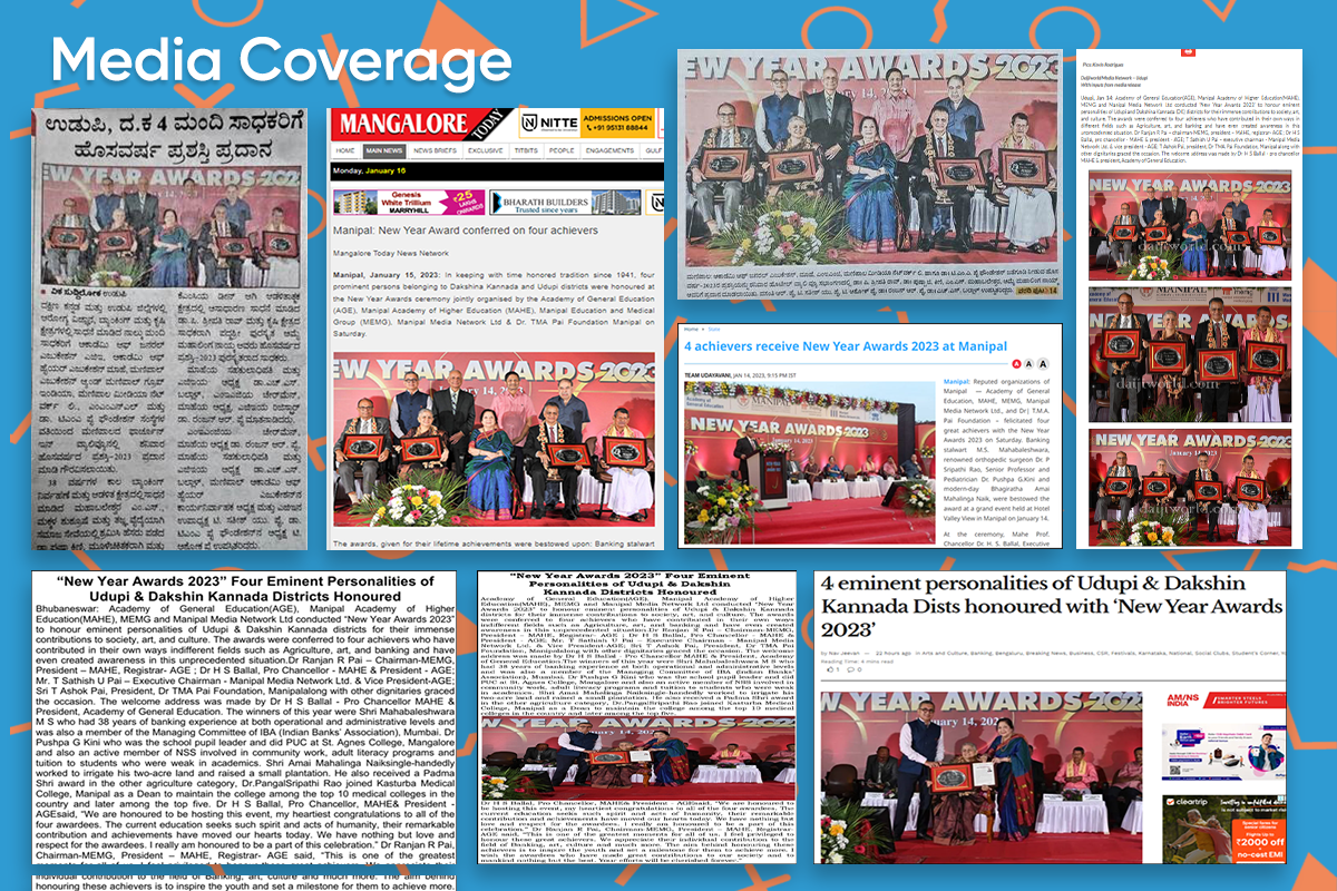 Expressing her happiness after receiving the award, Dr. Pushpa G Kini, Professor. Dept of Paediatrics, KMC Manipal said, “I stand before you with great humility and gratitude. I wish to place on record my gratitude and heartfelt thanks to the management of Manipal Academy of Higher Education, The Academy of General Education, MEMG, Manipal Media Network Ltd. and Dr. T.M.A. Pai Foundation for identifying me as worthy of the New Year Award 2023. I think I have just done my duty sincerely and I have not achieved much.”