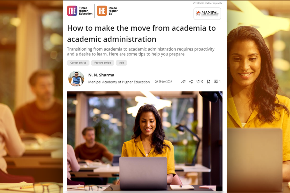 Manipal, 29 January 2024: Exclusive article, How to make the move from academia to academic administration, by Dr N.N. Sharma, Pro Vice Chancellor, Strategy and Planning, Manipal Academy of Higher Education MAHE, Manipal.