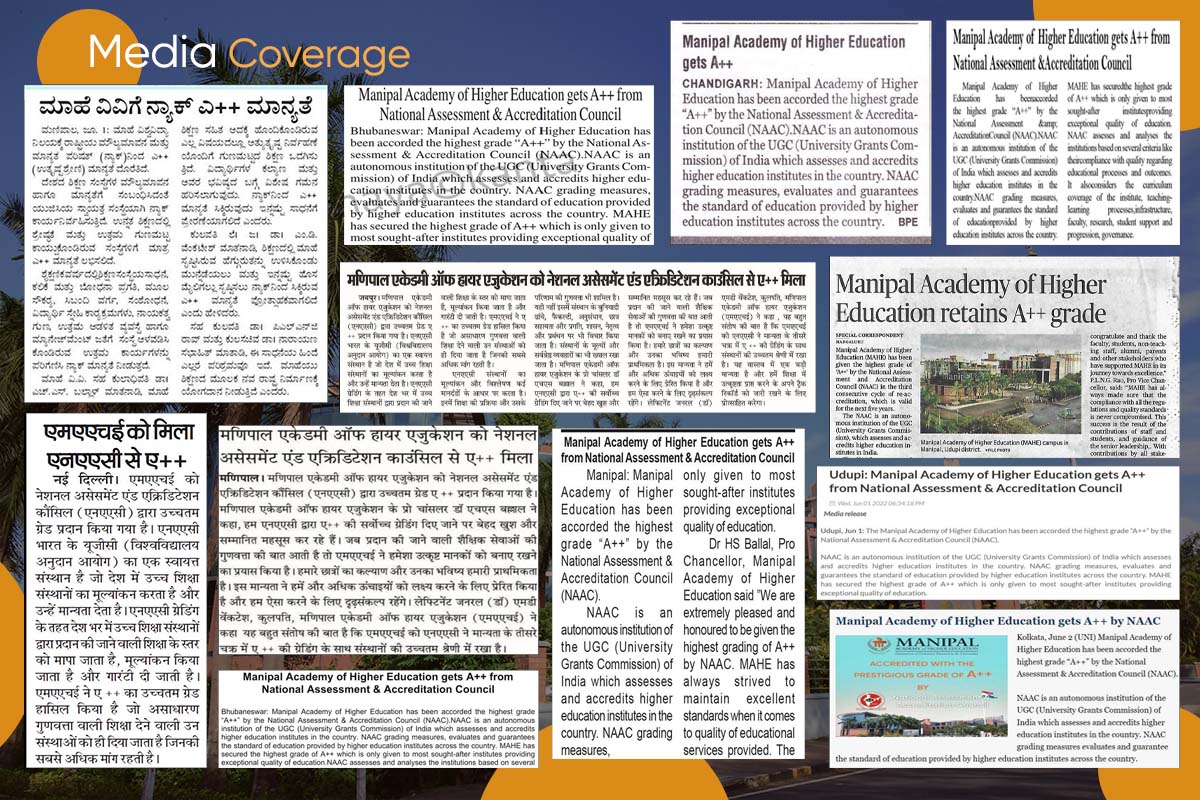 Lt Gen (Dr) M. D. Venkatesh, Vice-Chancellor, Manipal Academy of Higher Education (MAHE) said “It is a matter of great satisfaction that MAHE has been placed in the highest category of institutions with a grading of A++ in the third cycle of accreditation by NAAC. This is indeed a great recognition, and this will encourage us to continue our track record of achieving excellence in education. I congratulate and thank the faculty, students, non-teaching staff, alumni, parents, and other stakeholders who have supported MAHE in its journey towards excellence.”